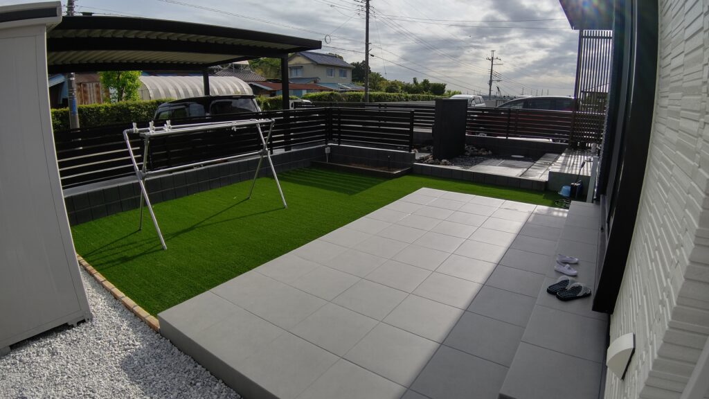 タイルデッキと人工芝