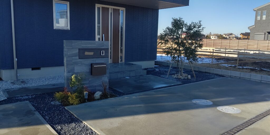 お施主様支給の真鍮の表札がとても合う!(お見せ出来ないのが残念)