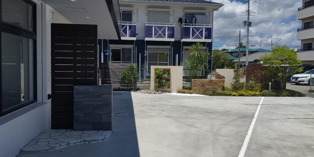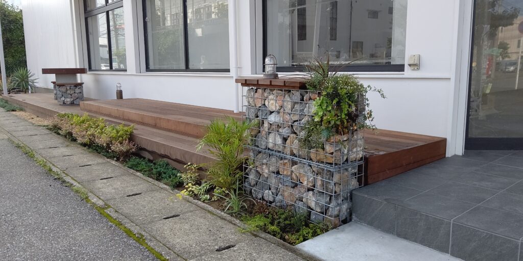 ガビオンを使った植栽門柱